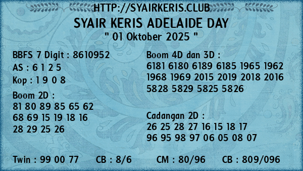 Prediksi Syair Keris Jitu Adelaide Day Rabu, 01 Oktober 2025