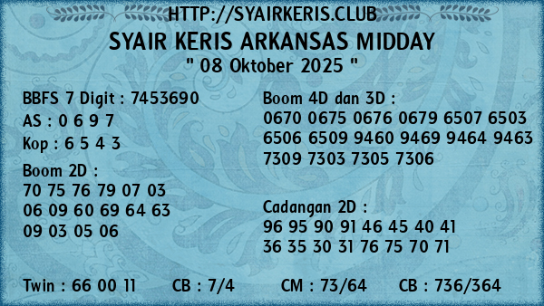 Prediksi Syair Keris Jitu Arkansas Midday Rabu, 08 Oktober 2025