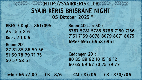 Prediksi Syair Keris Jitu Brisbane Night Minggu, 05 Oktober 2025