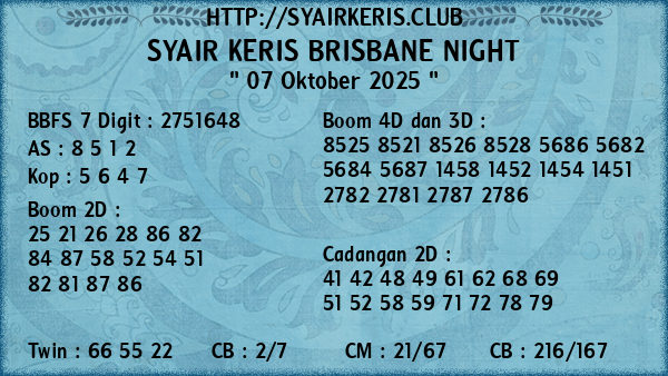 Prediksi Syair Keris Jitu Brisbane Night Selasa, 07 Oktober 2025