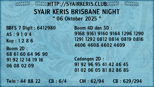 Prediksi Syair Keris Jitu Brisbane Night Senin, 06 Oktober 2025
