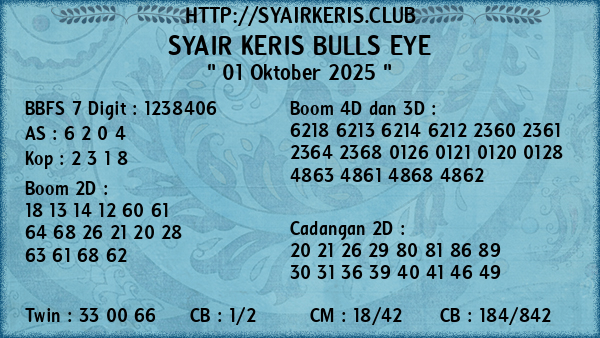 Prediksi Syair Keris Jitu Bulls Eye Rabu, 01 Oktober 2025