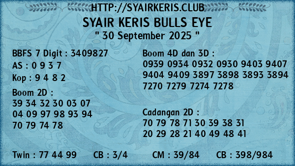 Prediksi Syair Keris Jitu Bulls Eye Selasa, 30 September 2025