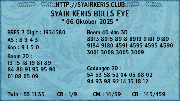 Prediksi Syair Keris Jitu Bulls Eye Senin, 06 Oktober 2025