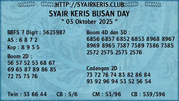 Prediksi Syair Keris Jitu Busan Day Jumat, 03 Oktober 2025