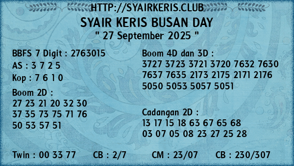 Prediksi Syair Keris Jitu Busan Day Sabtu, 27 September 2025