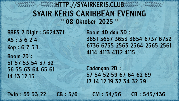 Prediksi Syair Keris Jitu Caribbean Evening Rabu, 08 Oktober 2025
