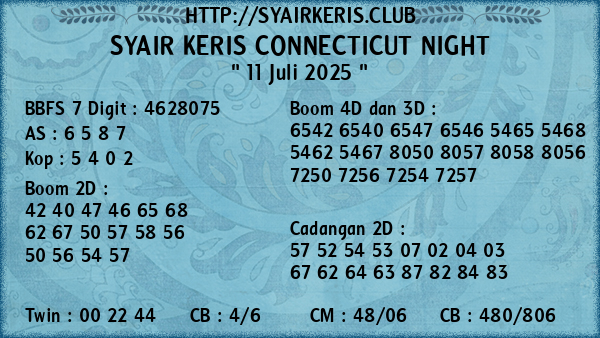 Prediksi Syair Keris Jitu Connecticut Night Jumat, 11 Juli 2025