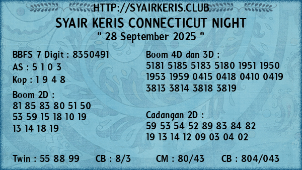 Prediksi Syair Keris Jitu Connecticut Night Minggu, 28 September 2025