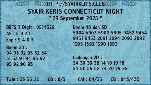 Prediksi Syair Keris Jitu Connecticut Night Senin, 29 September 2025