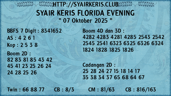 Prediksi Syair Keris Jitu Florida Evening Selasa, 07 Oktober 2025