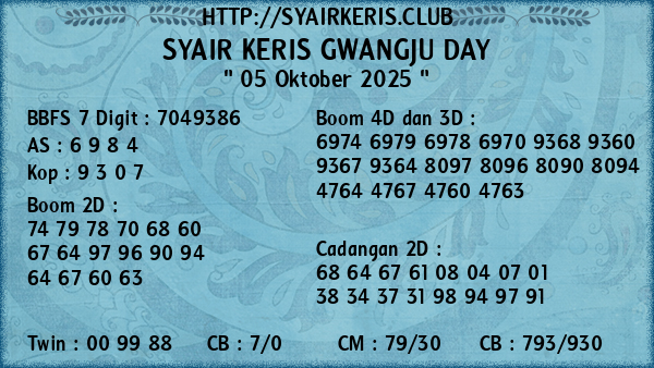 Prediksi Syair Keris Jitu Gwangju Day Minggu, 05 Oktober 2025