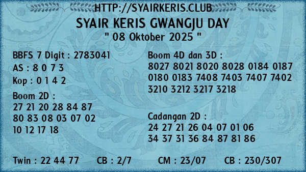 Prediksi Syair Keris Jitu Gwangju Day Rabu, 08 Oktober 2025