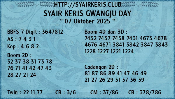 Prediksi Syair Keris Jitu Gwangju Day Selasa, 07 Oktober 2025