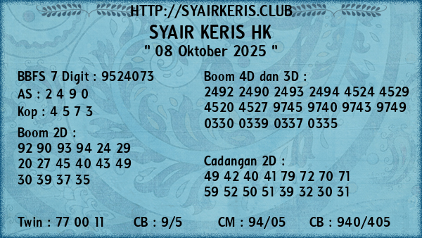 Prediksi Syair Keris Jitu HK Rabu, 08 Oktober 2025