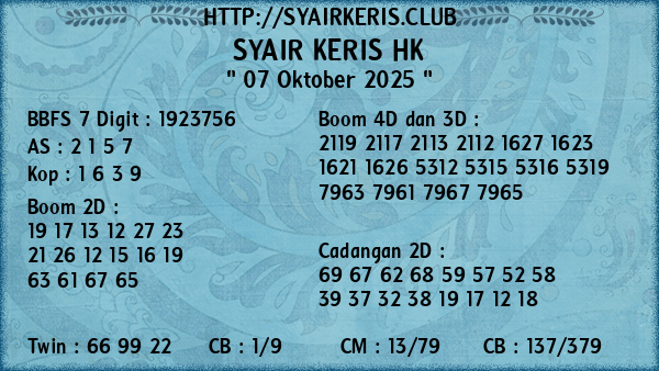 Prediksi Syair Keris Jitu HK Selasa, 07 Oktober 2025