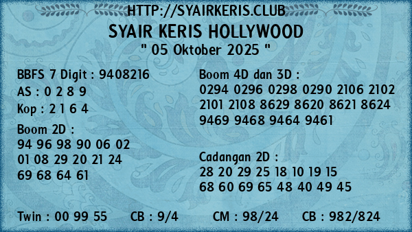 Prediksi Syair Keris Jitu Hollywood Minggu, 05 Oktober 2025
