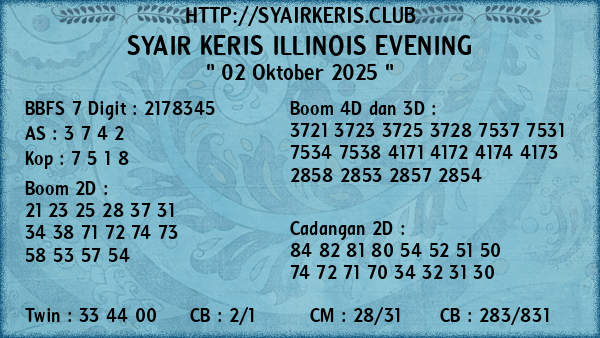 Prediksi Syair Keris Jitu Illinois Evening Kamis, 02 Oktober 2025