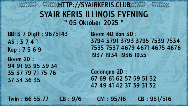 Prediksi Syair Keris Jitu Illinois Evening Minggu, 05 Oktober 2025