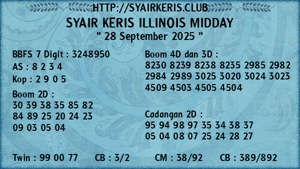 Prediksi Syair Keris Jitu Illinois Midday Minggu, 28 September 2025