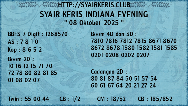 Prediksi Syair Keris Jitu Indiana Evening Rabu, 08 Oktober 2025