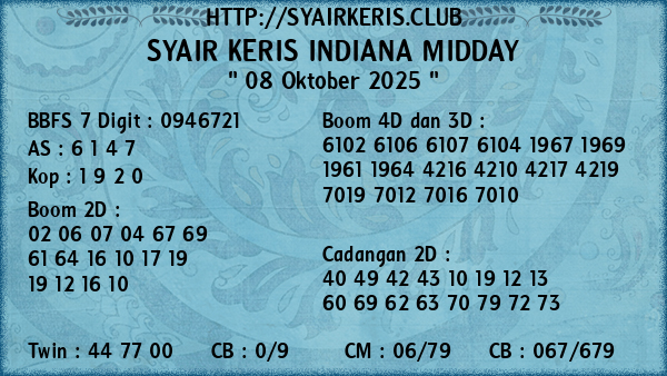 Prediksi Syair Keris Jitu Indiana Midday Rabu, 08 Oktober 2025