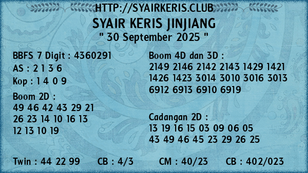 Prediksi Syair Keris Jitu Jinjiang Selasa, 30 September 2025