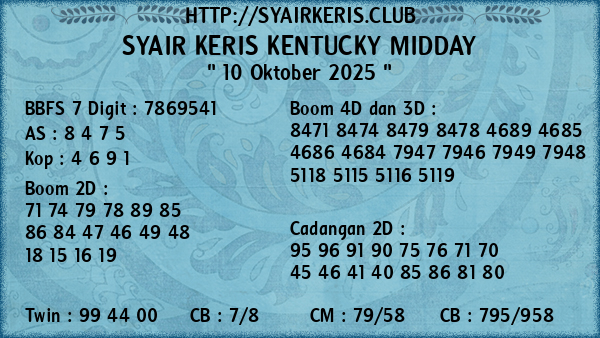 Prediksi Syair Keris Jitu Kentucky Midday Jumat, 10 Oktober 2025