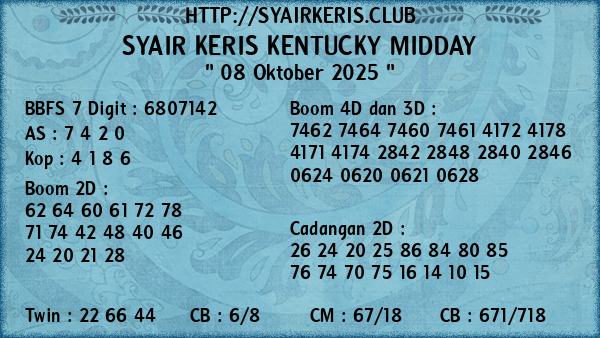 Prediksi Syair Keris Jitu Kentucky Midday Rabu, 08 Oktober 2025