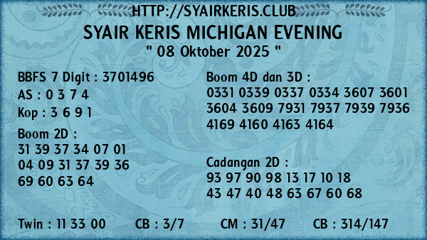 Prediksi Syair Keris Jitu Michigan Evening Rabu, 08 Oktober 2025