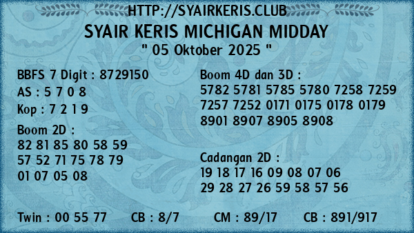 Prediksi Syair Keris Jitu Michigan Midday Minggu, 05 Oktober 2025