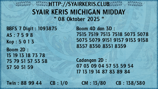 Prediksi Syair Keris Jitu Michigan Midday Rabu, 08 Oktober 2025