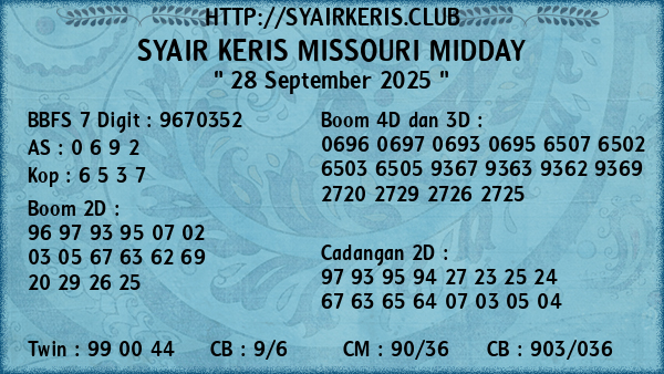 Prediksi Syair Keris Jitu Missouri Midday Minggu, 28 September 2025