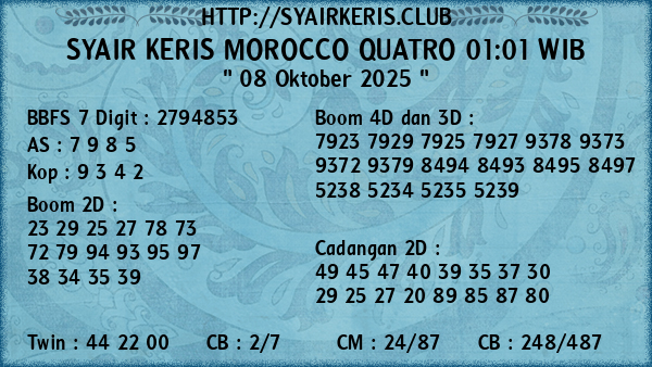 Prediksi Syair Keris Jitu Morocco Quatro 01:01 WIB Rabu, 08 Oktober 2025