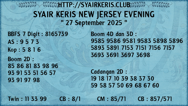 Prediksi Syair Keris Jitu New Jersey Evening Sabtu, 27 September 2025