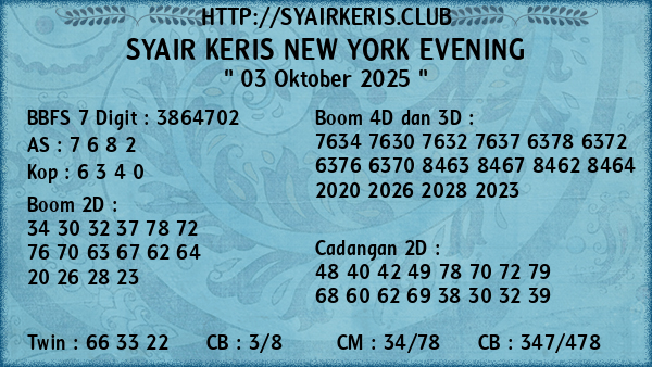 Prediksi Syair Keris Jitu New York Evening Jumat, 03 Oktober 2025