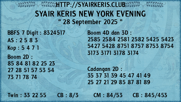 Prediksi Syair Keris Jitu New York Evening Minggu, 28 September 2025