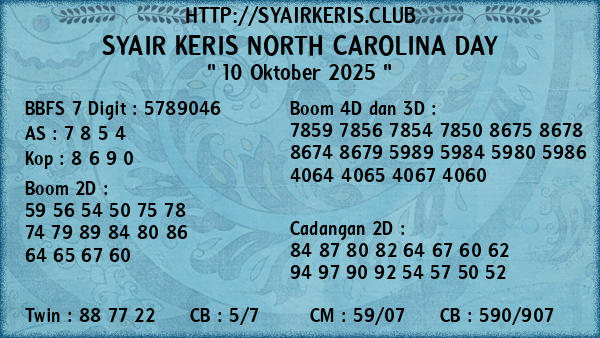 Prediksi Syair Keris Jitu North Carolina Day Jumat, 10 Oktober 2025