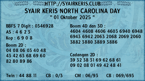 Prediksi Syair Keris Jitu North Carolina Day Rabu, 01 Oktober 2025