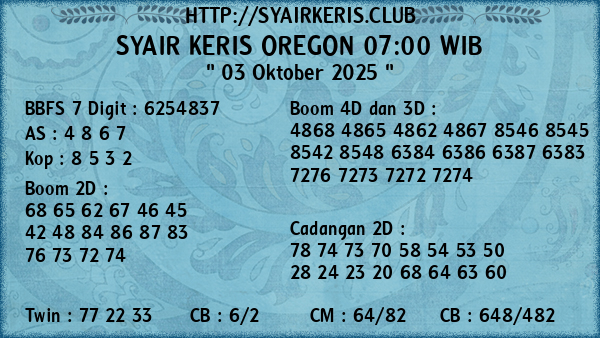 Prediksi Syair Keris Jitu Oregon 07:00 WIB Jumat, 03 Oktober 2025