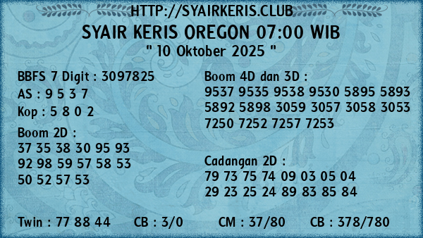 Prediksi Syair Keris Jitu Oregon 07:00 WIB Jumat, 10 Oktober 2025