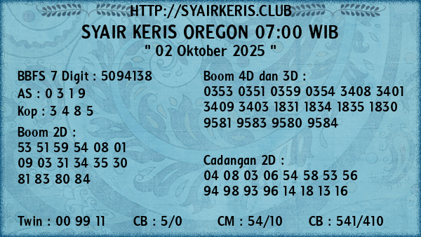 Prediksi Syair Keris Jitu Oregon 07:00 WIB Kamis, 02 Oktober 2025