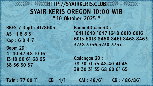 Prediksi Syair Keris Jitu Oregon 10:00 WIB Jumat, 10 Oktober 2025