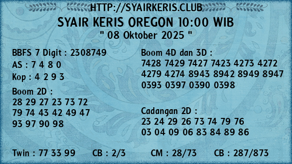Prediksi Syair Keris Jitu Oregon 10:00 WIB Rabu, 08 Oktober 2025