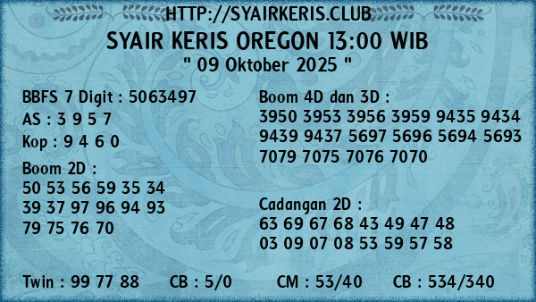 Prediksi Syair Keris Jitu Oregon 13:00 WIB Kamis, 09 Oktober 2025
