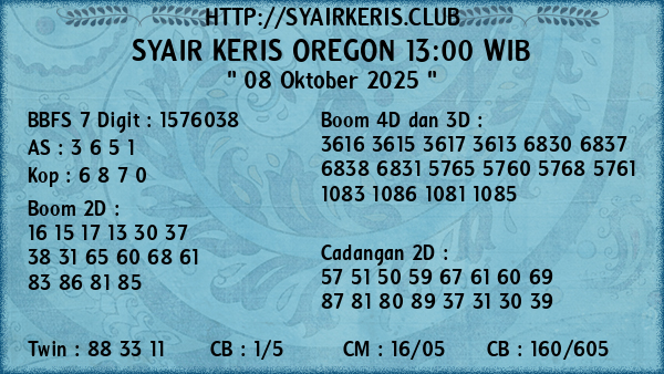 Prediksi Syair Keris Jitu Oregon 13:00 WIB Rabu, 08 Oktober 2025