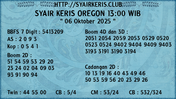 Prediksi Syair Keris Jitu Oregon 13:00 WIB Senin, 06 Oktober 2025