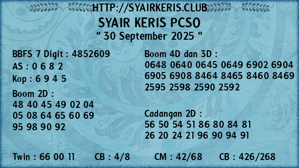 Prediksi Syair Keris Jitu Pcso Selasa, 30 September 2025