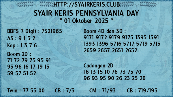 Prediksi Syair Keris Jitu Pennsylvania Day Rabu, 01 Oktober 2025