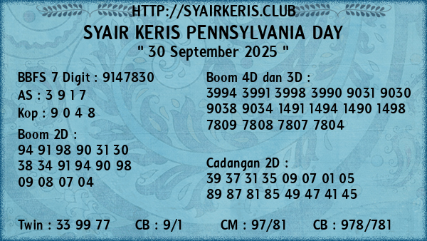 Prediksi Syair Keris Jitu Pennsylvania Day Selasa, 30 September 2025